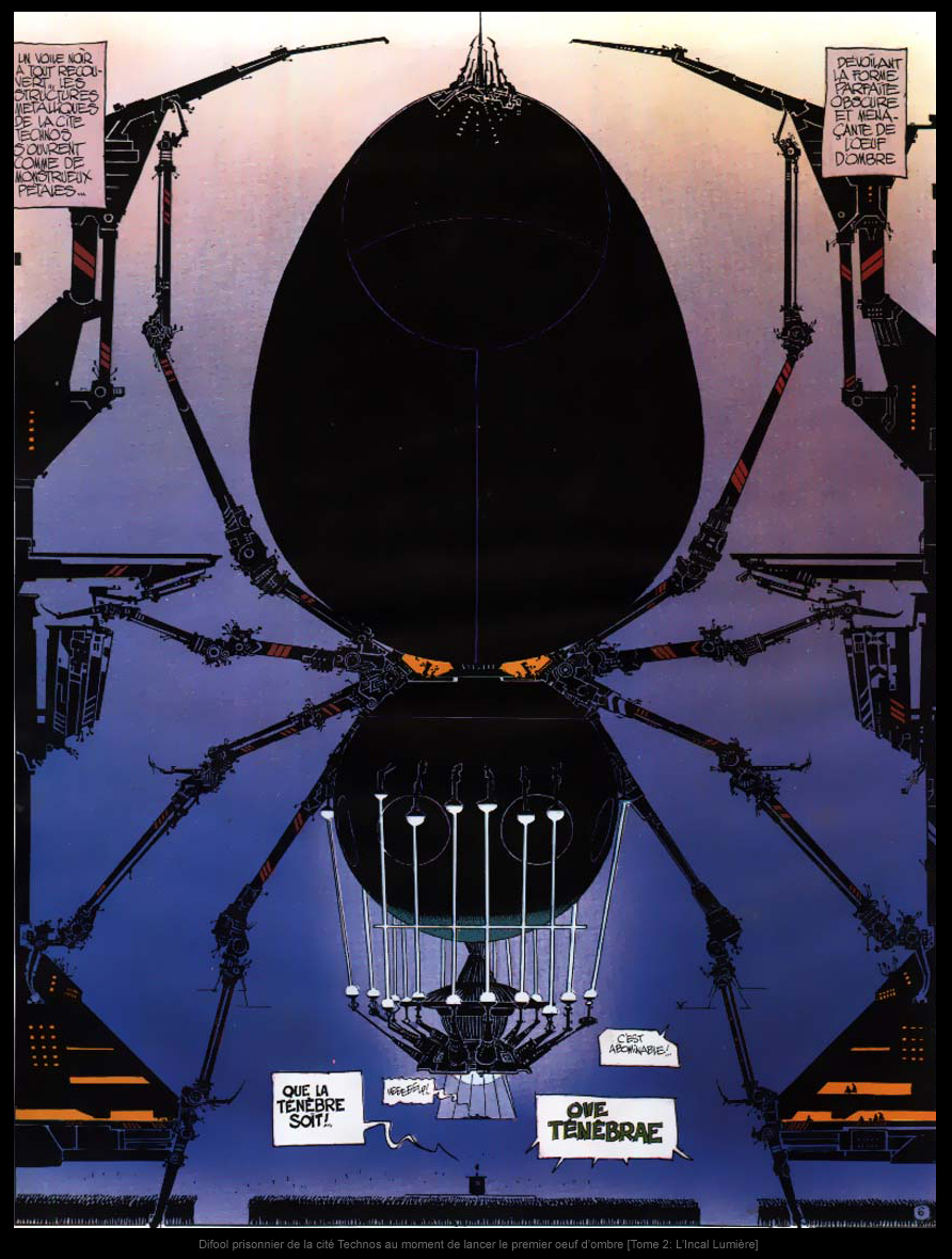 Après avoir réunifié l'Incal, JDF et ses amis vont se lancer à l'assaut des milliers d'oeufs d'ombre à l'oeuvre dans toute la galaxie. Sur Aquaend, la planète prison, sur laquelle aucune terre n'émerge, ils vont trouver le moyen de vaincre les oeufs. L'Incal peut en effet provoquer une mutation chez une espèce spécifique de méduse géante afin qu'elles puissent s'attaquer aux oeufs. Le plan marche à merveille, et un grand nombre d'oeufs sont neutralisés. Mais pour vaincre l'ennemi, il faut s'attaquer au personnage qui s'est entièrement donné à la Ténèbre, le Techno-Centreur. Dans cette optique, ils doivent s'allier avec les Bergs. Pour cela, JDF se bat pour avoir le droit de féconder la reine Berg. Il réussit et grâce à la flotte de l'empire Berg, Technogéa (la station spatiale Technos) tombe. Mais lors du combat singulier entre Solune et le Techno-Centreur, le passage pour la Ténèbre est ouvert au coeur même de la matière. En gros: chaque atome peut désormais être un passage pour la Ténèbre.
