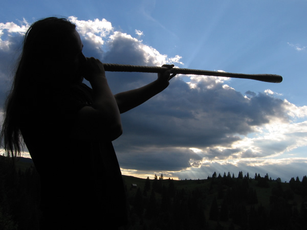 Je ne fais pas et n’ai jamais fait partie d’un orchestre. Je voyage beaucoup, il est donc difficile de trouver du temps pour jouer avec des ensembles traditionnels, comme je suis souvent loin de chez moi. Depuis mon enfance les ensembles de bucium me fascinent, c’était donc dans l’ordre des choses que je m’y essaye un jour où l’autre. J’ai toujours été attiré par ce puissant son mystérieux. Et j’ai grandi aussi bien au milieu de contes folkloriques et d’histoires passionnantes que de paysages époustouflants, de forêts et de sombres falaises. Tout ceci a toujours une influence sur moi. J’ai commencé à jouer à des instruments à vent il y a de cela quelques années, et dans ce domaine je suis un parfait autodidacte. Evidemment, j’ai acheté un paquet d’instruments merdiques au début. Mais finalement j’ai commencé à m’y connaitre sérieusement et à bien choisir mon instrument. Il y a bien sûr bon nombre de personnes talentueuses qui maîtrisent ces instruments avec grâce et que j’admire beaucoup. Pour être franc, je suis bien en dessous de ce niveau-là. J’ai déniché quelques excellents fabricants d’instruments et j’en suis très content. C’est très dur de trouver de bons instruments ou des personnes qui les fabriquent avec passion. C’est tellement difficile que la plupart des gens arrêtent de chercher très rapidement.
